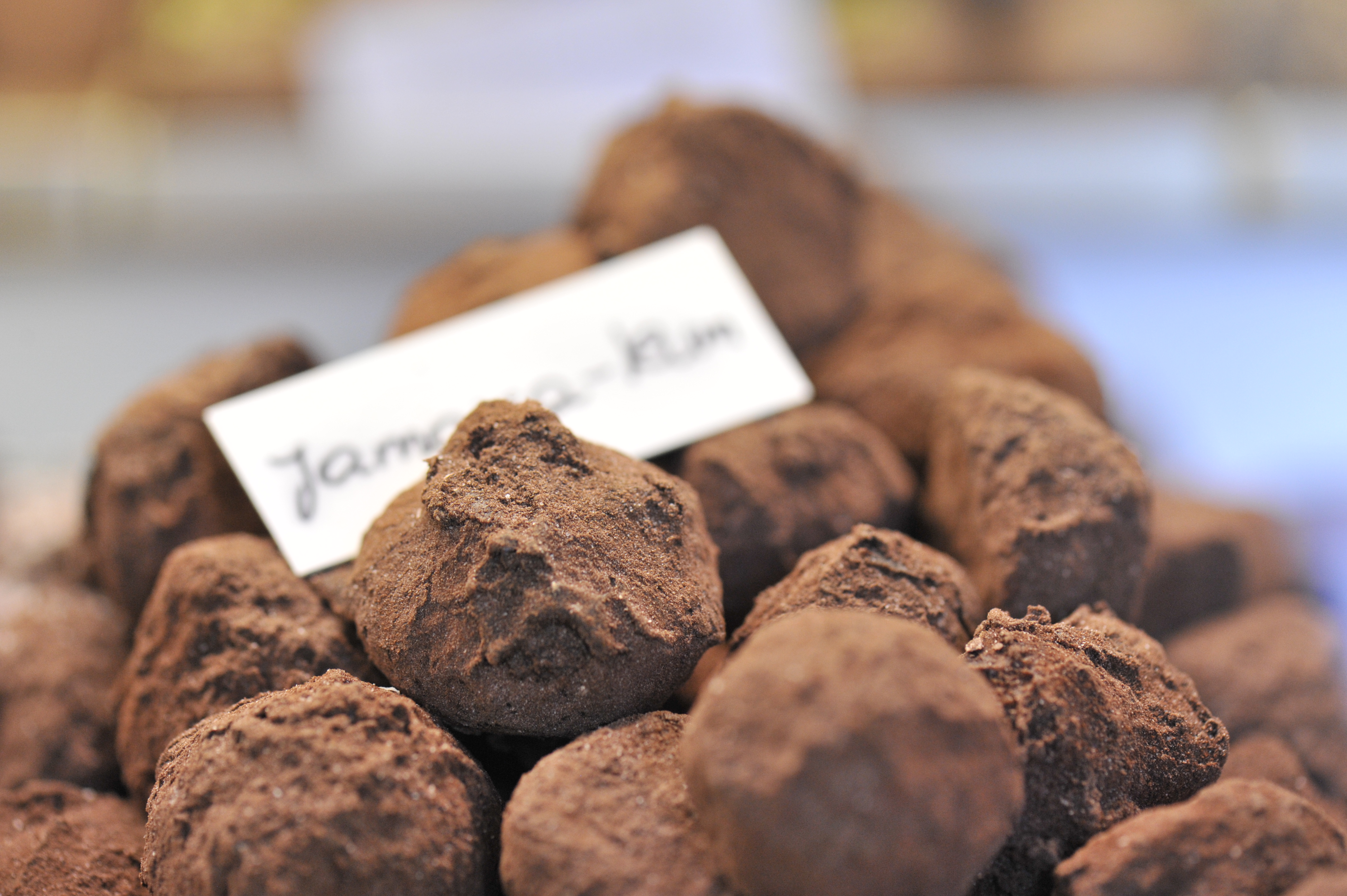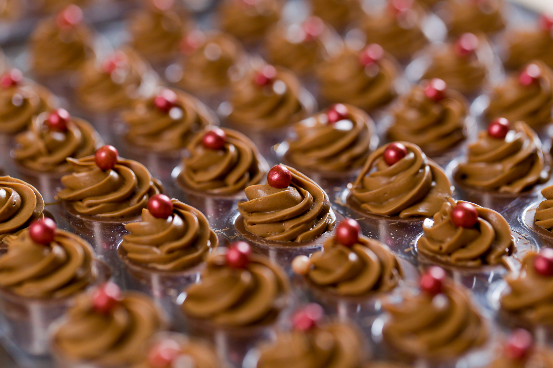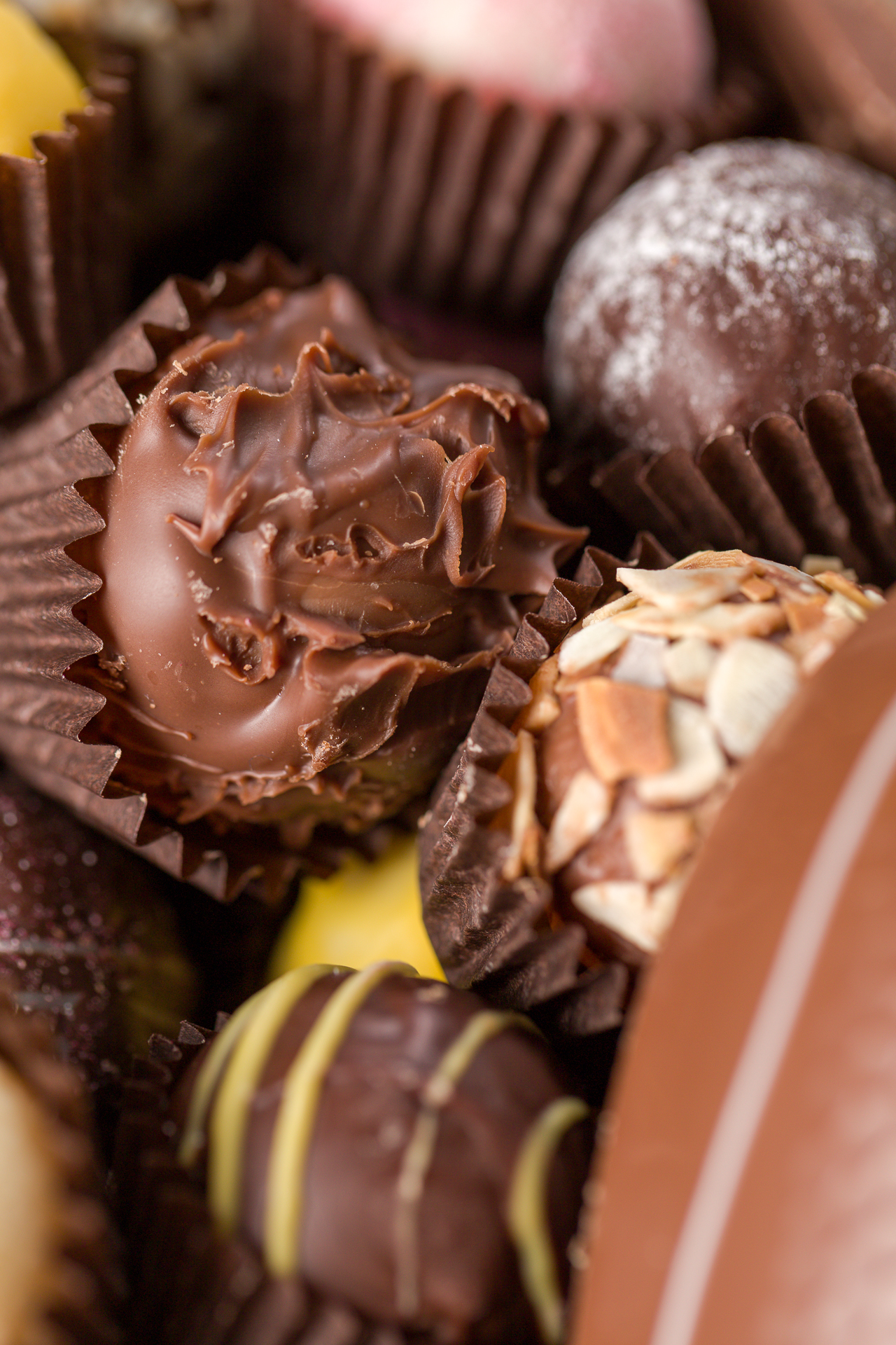 Ich produzieren laufend frische Pralinen, Konfekt und Bonbons. Meist befinden sich über 30 verschiedene Sorten im Verkauf, die auch immer wieder wechseln.